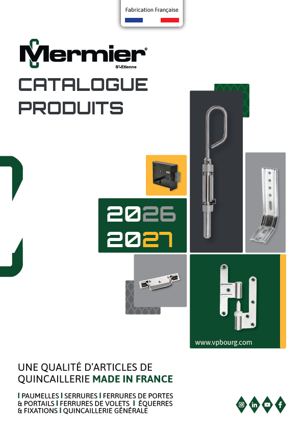 Expert dans la transformation des métaux, VPbourg est également spécialisée, depuis plus de 150 ans, dans la fabrication d’articles de quincaillerie de bâtiment et autres solutions d’agencement. Fabriqués dans la Loire et la Haute-Loire, VPbourg propose à la vente, près de 2000 références, commercialisées sous ses trois marques que sont Mermier Saint-Etienne, Map et Système Plum.